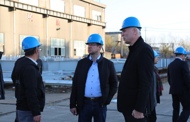 我公司董事長李寶東先生和王靜夜總經(jīng)理對考察團的到來表示熱烈歡迎,并陪同考察團到各公司進行了實地的考察。李董事長向來賓介紹了我公司的基本情況和我公司不同行業(yè)發(fā)展現(xiàn)狀,外賓對我公司的船體分段制造、鋼結(jié)構(gòu)構(gòu)件成品、集裝箱房及船用裝飾材料各單元產(chǎn)品表示極大的興趣。并對我公司立足長遠發(fā)展,實現(xiàn)企業(yè)效益和社會效益雙贏的戰(zhàn)略給予了高度肯定。 Mr. Li Baodong, the chairman of our company, and Mr. Wang Jingye, the general manager of the company, expressed their warm welcome to the delegation and accompanied the delegation to the companies for a field visit. Chairman Li introduced the basic situation of our company and the development status of different industries of our company. The foreign guests expressed great greatness to the hull segment manufacturing, steel structural component finished products, container house and marine decorative materials. interest. It also highly affirmed the strategy of our company based on long-term development and achieving a win-win situation for both corporate and social benefits.