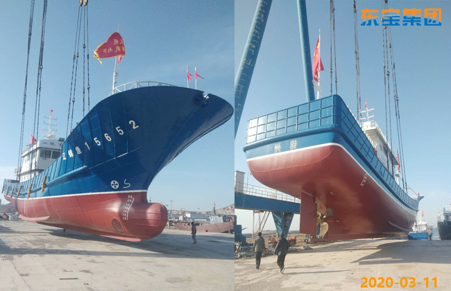 今日,在遼寧東寶集團(tuán)船舶制造有限公司碼頭,一艘新建38米漁船順利安全下水。 Today, a new 38-meter fishing boat was launched safely at the port of liaoning dongbao shipbuilding co. LTD. 該漁船船長38米,適航遠(yuǎn)海航區(qū)。該系列船為鋼質(zhì)、雙甲板、柴油機(jī)動力、單機(jī)單漿單舵的船型。主要用于太平洋公海捕魚作業(yè),超低溫速凍保鮮魚貨供應(yīng)市場。